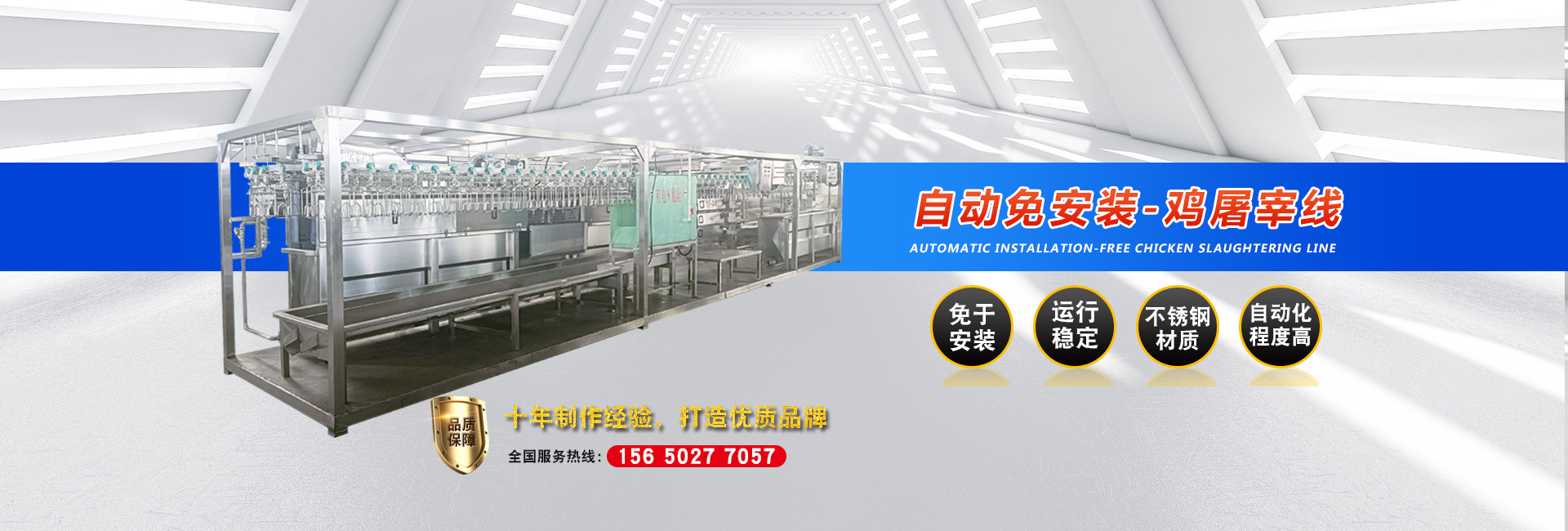 公司長期與國內(nèi)外屠宰加工企業(yè)合作,走引進(jìn)——消化——創(chuàng)新和自主研發(fā)相結(jié)合的道路,在國內(nèi)外同類產(chǎn)品的基礎(chǔ)上,不斷更新和改造。公司主要設(shè)備有:A字型立式脫毛機(jī)、臥式脫毛機(jī)、強(qiáng)力噴淋機(jī)、松毛機(jī)、浸燙池、螺旋預(yù)冷機(jī)、禽籠清洗機(jī)、電暈機(jī)、兔扯皮機(jī)、兔割前爪/后爪機(jī)、剝胗機(jī)、自動洗鉤機(jī)、螺旋燙爪機(jī)、雞爪脫皮機(jī)、分割輸送帶等屠宰用設(shè)備。其中,公司獨(dú)力發(fā)明生產(chǎn)設(shè)計(jì)的“電動調(diào)節(jié)脫毛機(jī)”及“自動控水控溫浸燙池”順利通過知識產(chǎn)權(quán)局的實(shí)質(zhì)性審查。公司所生產(chǎn)的設(shè)備 可與國外同類產(chǎn)品配套使用,設(shè)備遠(yuǎn)銷阿爾及利亞、澳大利亞等中東、非州等并建立了長期穩(wěn)定的合作關(guān)系。