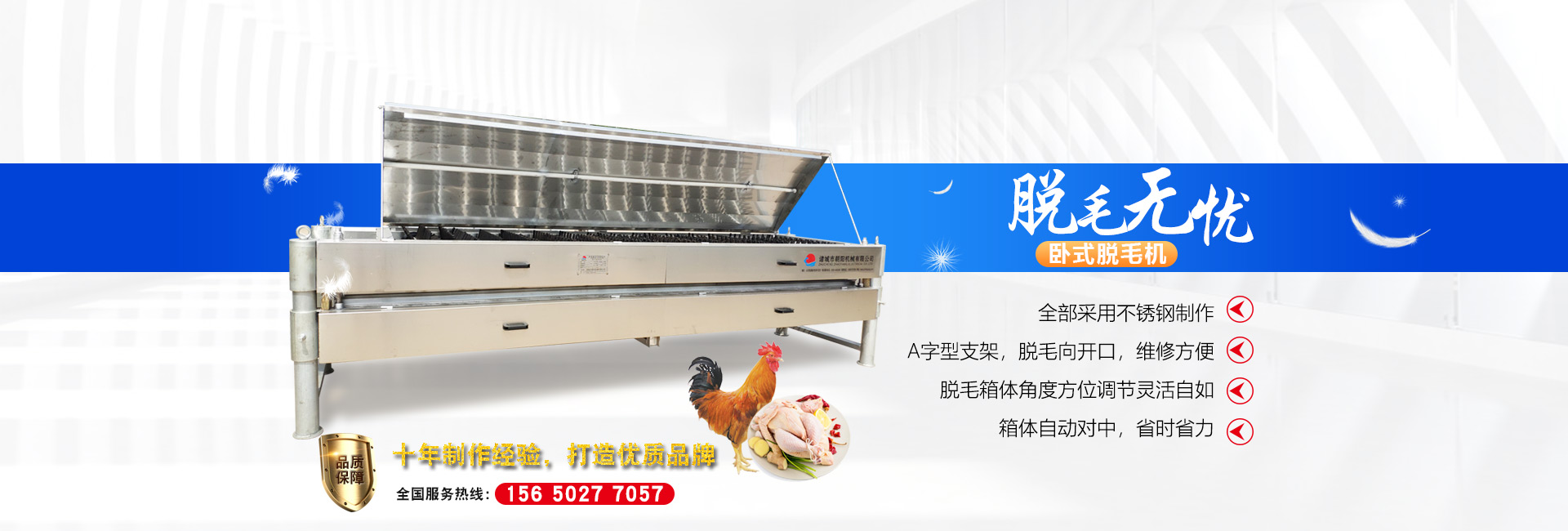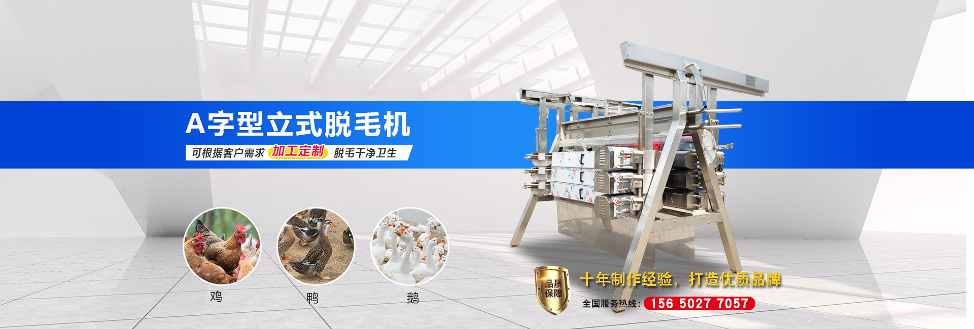 公司主要設(shè)備有:A字型立式脫毛機(jī)、臥式脫毛機(jī)、強(qiáng)力噴淋機(jī)、松毛機(jī)、浸燙池、螺旋預(yù)冷機(jī)、禽籠清洗機(jī)、電暈機(jī)、兔割前爪/后爪機(jī)、剝胗機(jī)、自動洗鉤機(jī)、螺旋燙爪機(jī)、雞爪脫皮機(jī)、分割輸送帶等屠宰用設(shè)備。